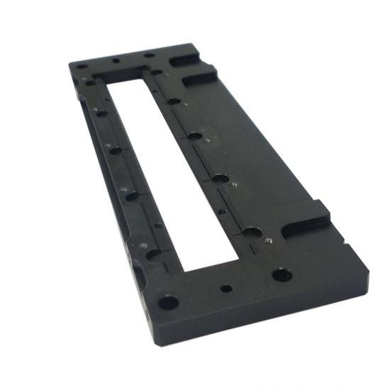 Es una de las piezas de aluminio anodizado mate y como placa de cubierta utilizada en la máquina de soldar. La perpendicularidad es de hasta 0,01 mm tanto en el datum A como en el B. Además, incline todos los orificios para la pieza de aluminio anodizado mate y muy estrictamente a la planitud de la superficie sin ningún defecto.