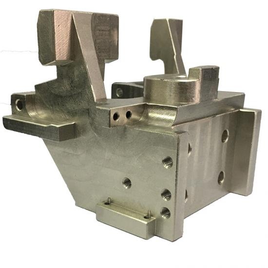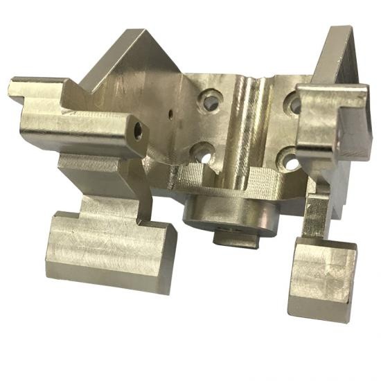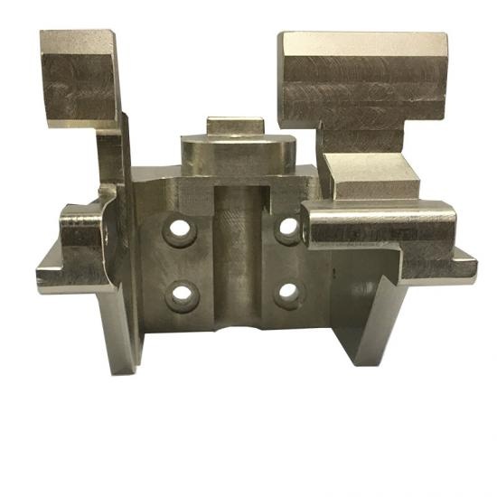 Está mecanizando accesorios de fundición de níquel para máquinas semiconductoras. Su planitud y paralelismo es de hasta 0.008 y 0.015 mm, mientras tanto inclina todos los orificios para la base de recubrimiento de níquel satinado completo y muy estricto para la superficie de mecanizado sin defectos ni desbarbado.