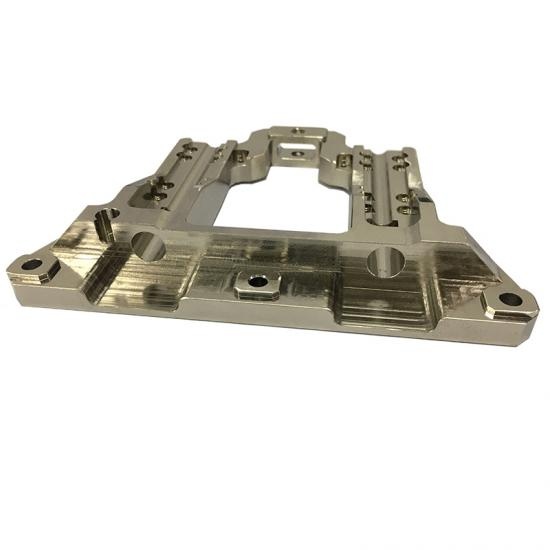 Está mecanizando accesorios de fundición de níquel para máquina semiconductora. Su planitud y perpendicularidad es de hasta 0.01 y 0.015 mm e inclina todos los orificios para partes enteras de capa de níquel satinado y muy estricto a la superficie sin defectos ni desbarbado.