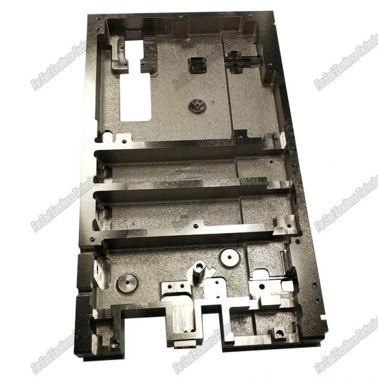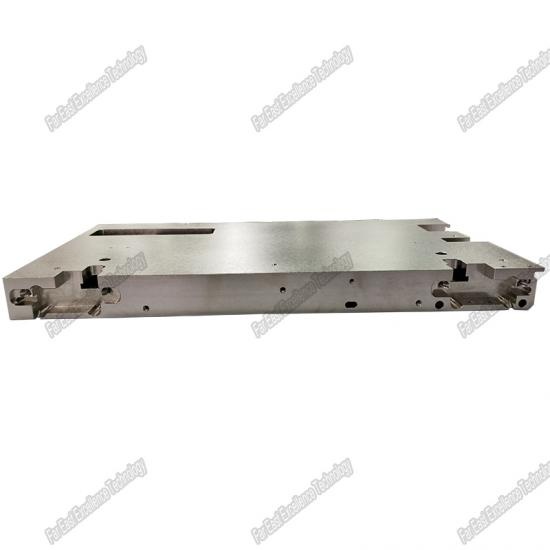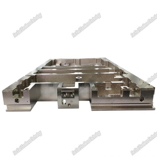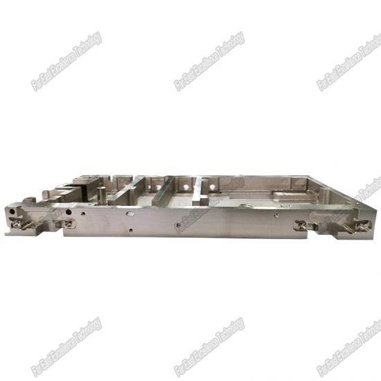 Es piezas de fundición para máquina semiconductora. Su perpendicularidad es de hasta 0,02 mm y simetría de espejo para piezas enteras de fundición de níquel satinado y muy estricta a la superficie sin defectos ni desbarbado.